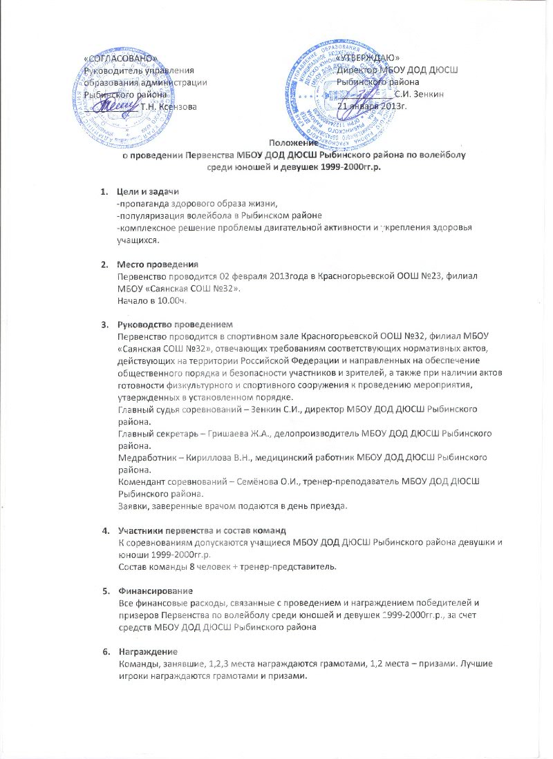 Первенство МБОУ ДОД ДЮСШ Рыбинского района по волейболу.